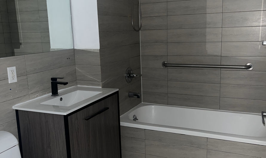 The bathroom comes with a soaking tub and a lot of space.